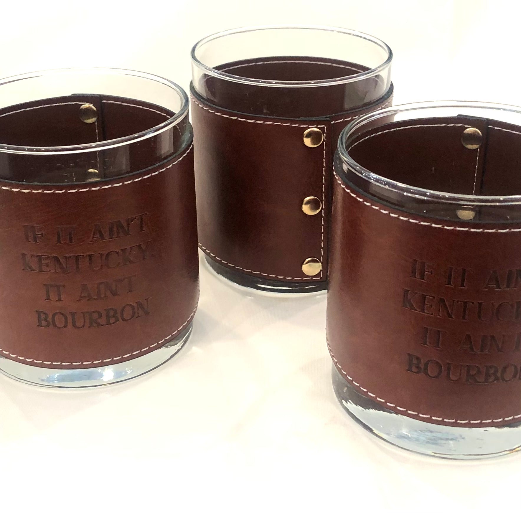 Glass, Leather Wrapped "If It Ain't Kentucky, It Ain't Bourbon"