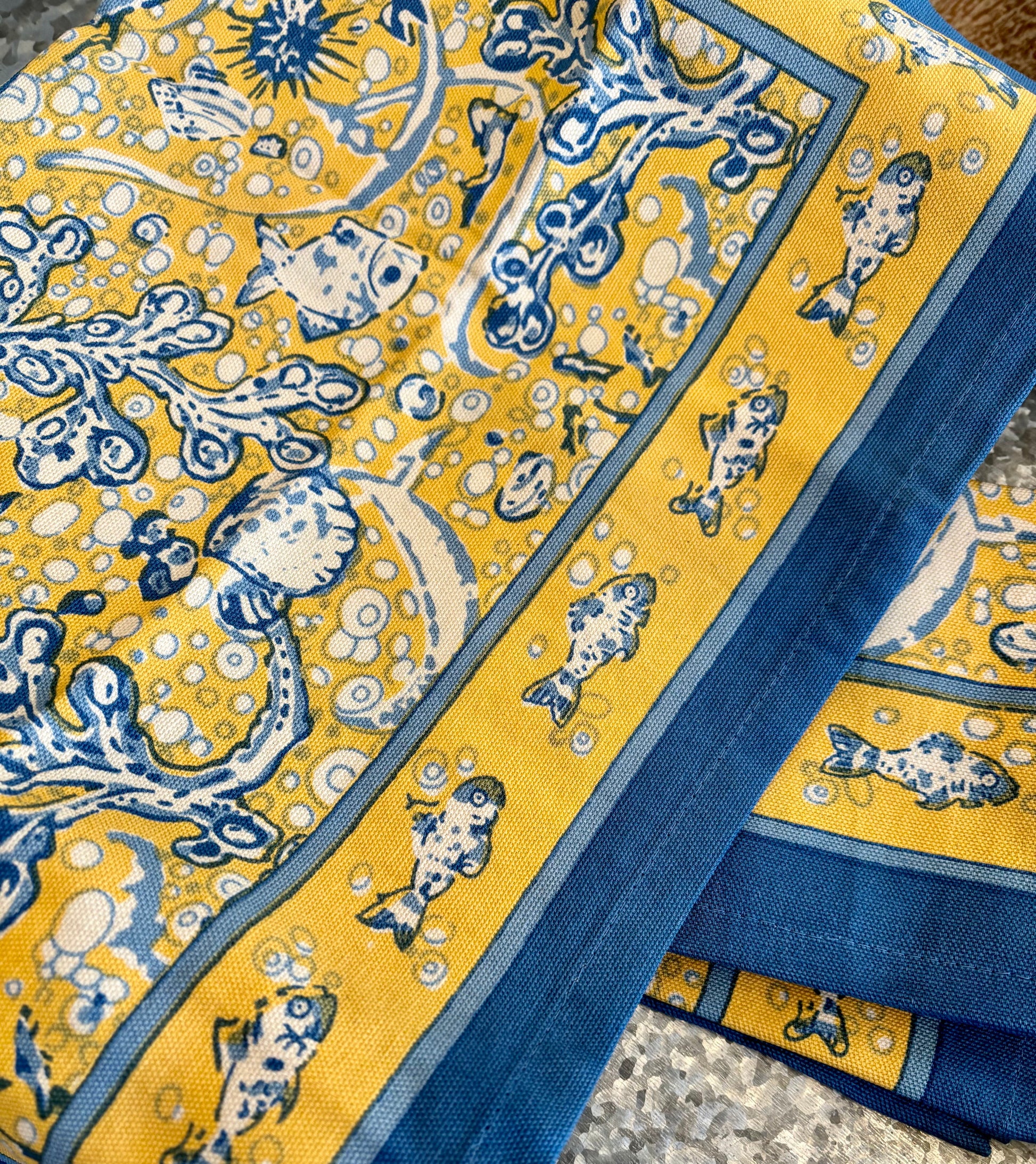 La Mer Blue and Yellow Tea Towel